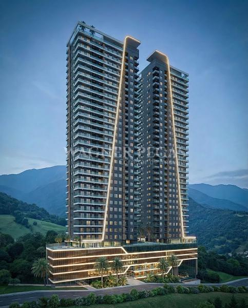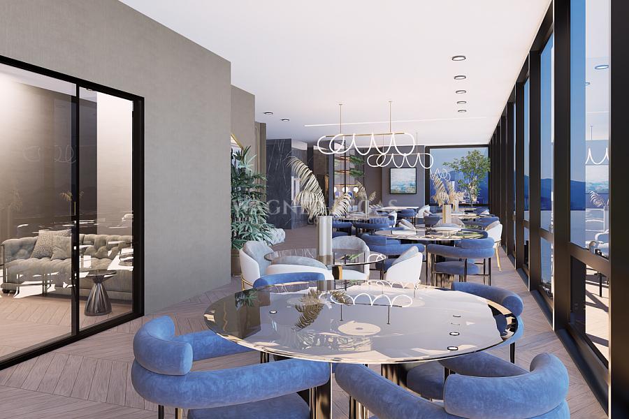 A 850 m da Praia de Perequê, o condomínio oferece portaria 24 horas, porteiro eletrônico e guarita de segurança. A área de lazer ocupa 4.500 m² e foi projetada para atender diversas rotinas, com piscina adulto e infantil, piscina térmica, hidromassagem, quadra poliesportiva, academia, sala de jogos e playground. Outros espaços incluem sala de reunião, coworking, sala de games, brinquedoteca, estúdio de pilates, cinema, pub, karaokê, salão de festas, espaço gourmet, lounge, bar, boliche, spa, sauna e beach tennis. Também há estrutura para pets, bicicletário, mini market e manicure. Cada torre conta com rooftop exclusivo, com restaurante, fire place, terraço e solário com vista para o mar. Outro diferencial é que o empreendimento também conta com um sistema de reaproveitamento da água da chuva.